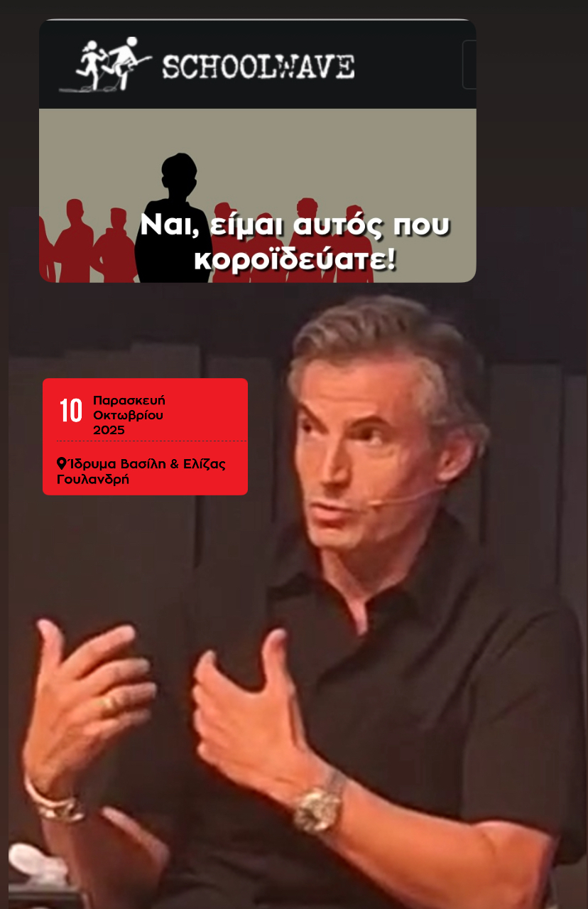 Ο συγγραφέας Νίκος Μιχαλόπουλος μιλάει για το bullying στο School Wave Festival, στο Ίδρυμα Βασίλη και Ελίζας Γουλανδρή