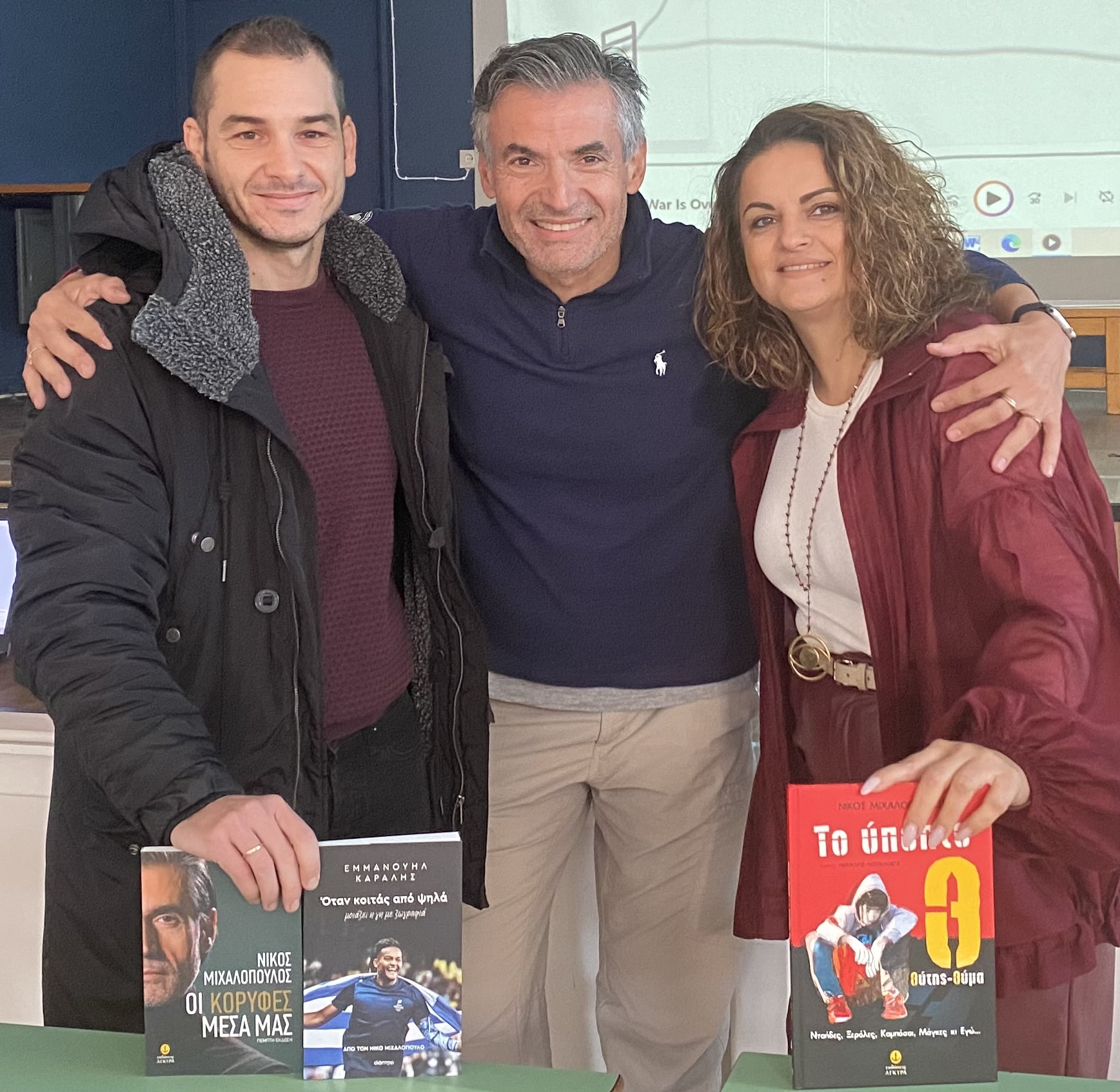 ΤΡΙΤΗ 2 ΔΕΚΕΜΒΡΙΟΥ 2025 Το 8ο Δημοτικό Σχολείο Καματερού υποδέχτηκε τον συγγραφέα, Νίκο Μιχαλόπουλο στα εγκαίνια της φετινής έκθεσης βιβλίου του. Αφορμή τα best seller του «ΟΙ ΚΟΡΥΦΕΣ ΜΕΣΑ ΜΑΣ» και «ΤΟ ΥΠΟΠΤΟ ΘΗΤΑ», που κυκλοφορούν από τις Εκδόσεις Άγκυρα, αλλά και το νέο του βιβλίο, που κυκλοφορεί από τις Εκδόσεις Διόπτρα, με τίτλο «Όταν κοιτάς από ψηλά», το επίσημο βιβλίο του Ολυμπιονίκη μας Εμμανουήλ Καραλή....